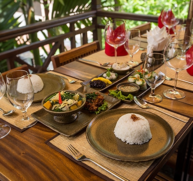 We make daily trips to the local markets to ensure that only the freshest and finest ingredients are used to prepare our dishes. Have we mentioned our Roast Chicken? Well, we really like it and so do our guests! Give it a try for a hearty lunch, you will not be disappointed! Aside from traditional Cambodian rice based dishes we have a selection of vegetarian specialities which we can make on order.
